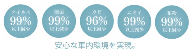 ・車内のウイルスや菌、ニオイの原因物質を減少(消臭・除菌)