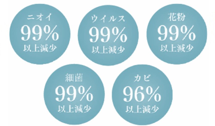 アレル物質、カビなど、様々な有害物質を99%減少。